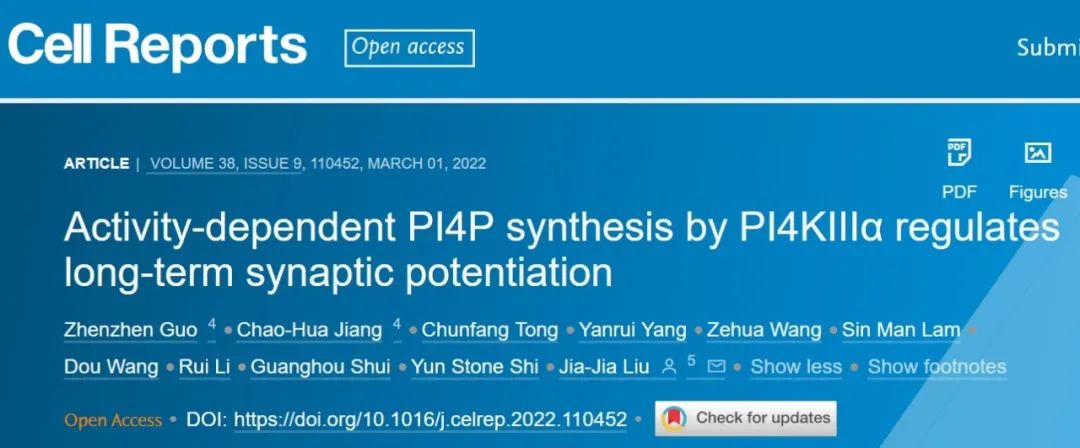 Cell Rep | 遗传所刘佳佳团队揭示膜脂分子PI4P调控突触可塑性的分子机制