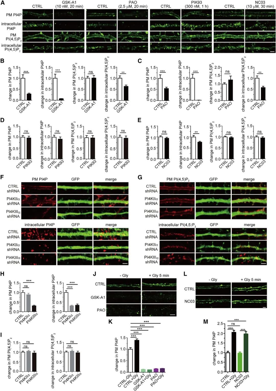 (magnitude),并且破坏了CA1神经元中LTP的维持(图5M,N)。这些数据提示了PI4KIIIa依赖的PI4P合成对于LTP期间的树突棘的结构和功能可塑性至关重要。